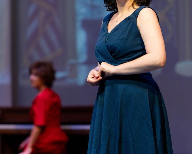 "Wendla is played by the compelling Samantha Ayoob. Her on-point voice is powerful in the numbers “Mama Who Bore Me” and “Whispering." Ayoob’s pitch-perfect sound brings all the adolescent struggles to her role as the curious teenager, and she is properly naïve and tender as Wendla. She shows her standout acting and flawless voice during the duet “The Word of You Body."